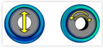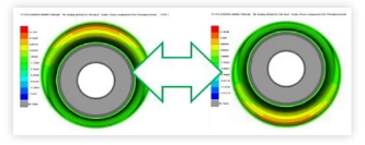 Die folgende Abbildung zeigt das Finite-Elemente-Modell einer bestimmten Aufhängungsbuchse unter Radiallast und das Konturdiagramm der Berechnungsergebnisse.