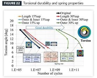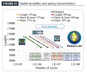 Forschungsergebnisse: Wenn nur der Außendurchmesser vergrößert wird, nimmt die Haltbarkeit gegenüber radialen Belastungen ab, die Torsionshaltbarkeit verbessert sich und die Federleistung nimmt ab. Wenn sowohl der Innen- als auch der Außendurchmesser vergrößert werden, verbessert sich sowohl die Haltbarkeit unter Radiallasten als auch unter Torsionslasten, während die Federleistung nachlässt. Wenn die axiale Länge vergrößert wird, verbessert sich sowohl die Haltbarkeit unter radialen Belastungen als auch unter Torsionsbelastungen und die Federleistung wird steifer.