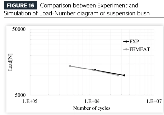 Anschließend werden die Ergebnisse der oben genannten Strukturanalyse an das Ermüdungsanalysemodul der Software übertragen (in diesem Fall mithilfe der FEMFAT-Software von Magna ECS) und mit den Ergebnissen der Haltbarkeitstests verglichen. Der Test und die Analyse zeigen eine hervorragende Konsistenz sowohl bei der Ermüdungslebensdauer als auch bei der Risslokalisierung.