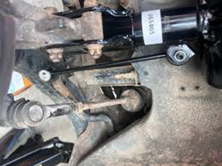 2. Testfahrt auf der Straße: Fahren Sie langsam (10–20 Meilen pro Stunde) über Bodenschwellen oder holprigen Asphalt. → Typisches Symptom: Lautes metallisches „Klackern“ oder Rasseln von vorne oder hinten (normalerweise von beiden Seiten). Hinweis: Geräusche können auf schlechte Federbeinlager oder Querlenkerbuchsen hinweisen – bestätigen Sie dies immer mit einem Wackeltest.